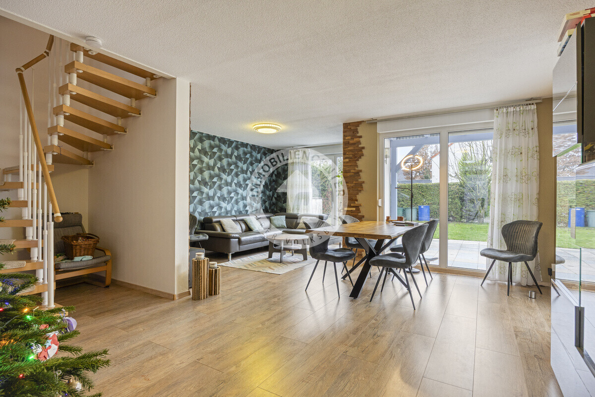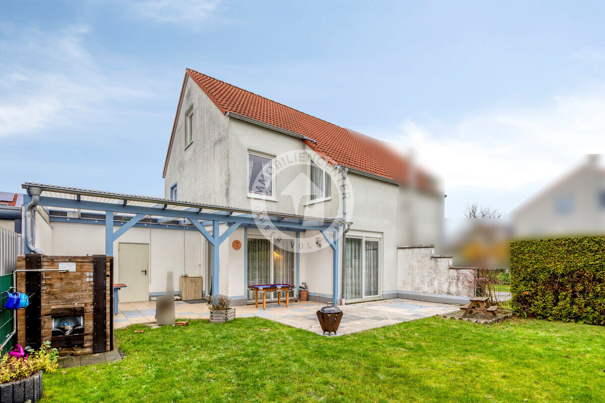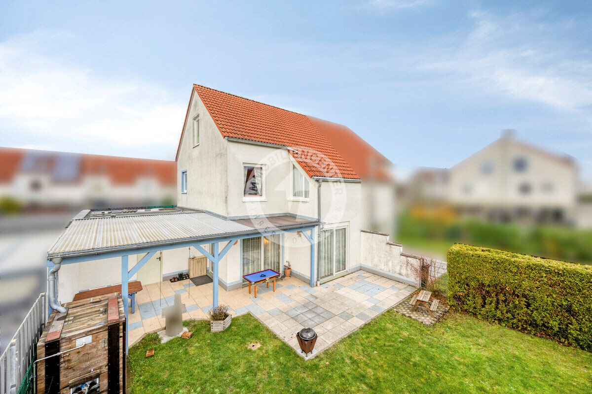 Zugang zur überdachten Terrasse haben Sie sowohl vom Wohnzimmer als auch von der Garage aus. Im Garten können Sie gesellige Grillabende mit Freunden verbringen und Ihre Kinder haben ausreichend Platz zum Spielen.