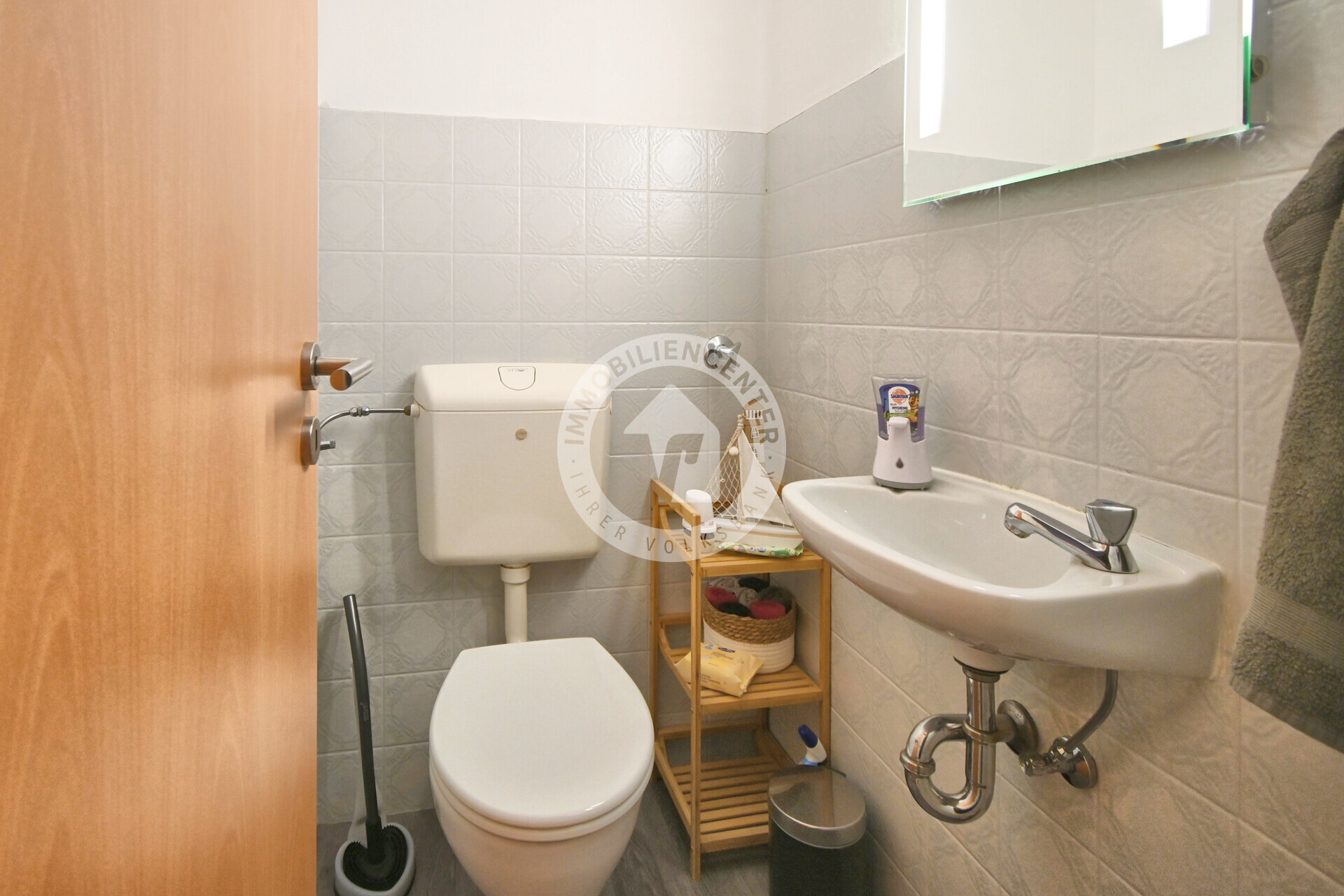 Das Tageslichtbad mit Dusche und Waschmaschinenanschluss sorgt für ein angenehmes Wohngefühl, ergänzt durch ein zusätzliches Gäste-WC.