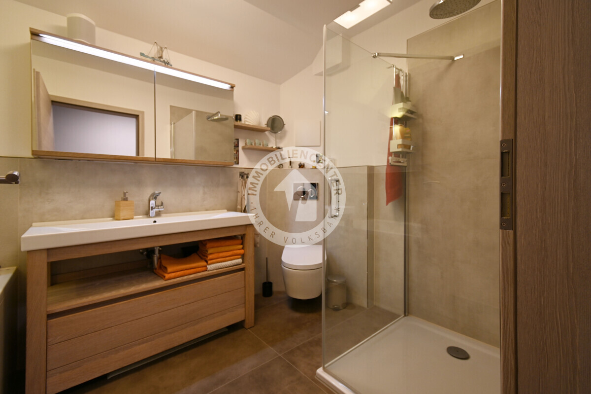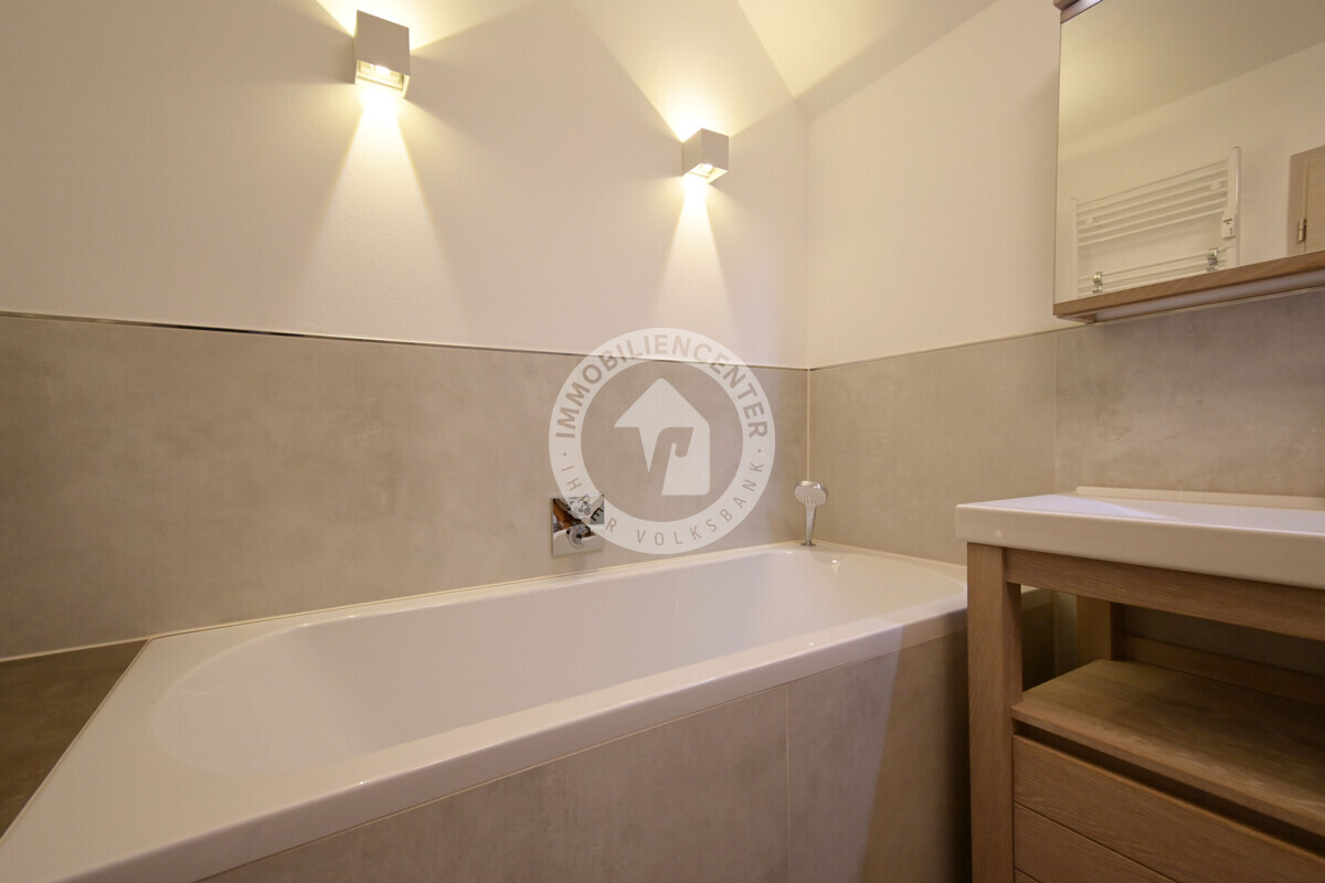 Das Bad ist komplett modernisiert und mit Regendusche und Badewanne ausgestattet.