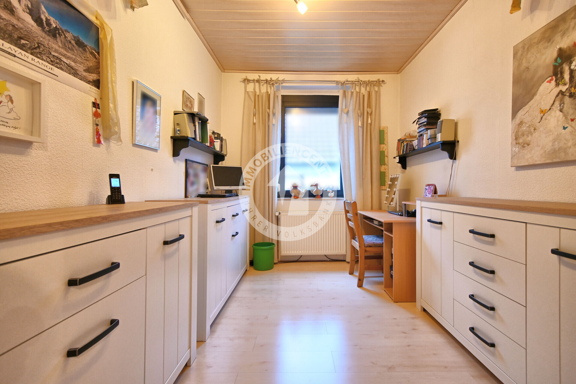 Auf zwei Ebenen stehen Ihnen drei gut geschnittene Zimmer zur Verfügung. Im Erdgeschoss finden Sie ein helles Wohn- und Esszimmer sowie eine zeitlose Küche, die im Kaufpreis enthalten ist. Das geflieste Tageslichtbad mit Badewanne und Waschmaschinenanschluss liegt gegenüber eines praktischen Abstellraums. Ebenfalls im Erdgeschoss: ein Büro oder Kinderzimmer.