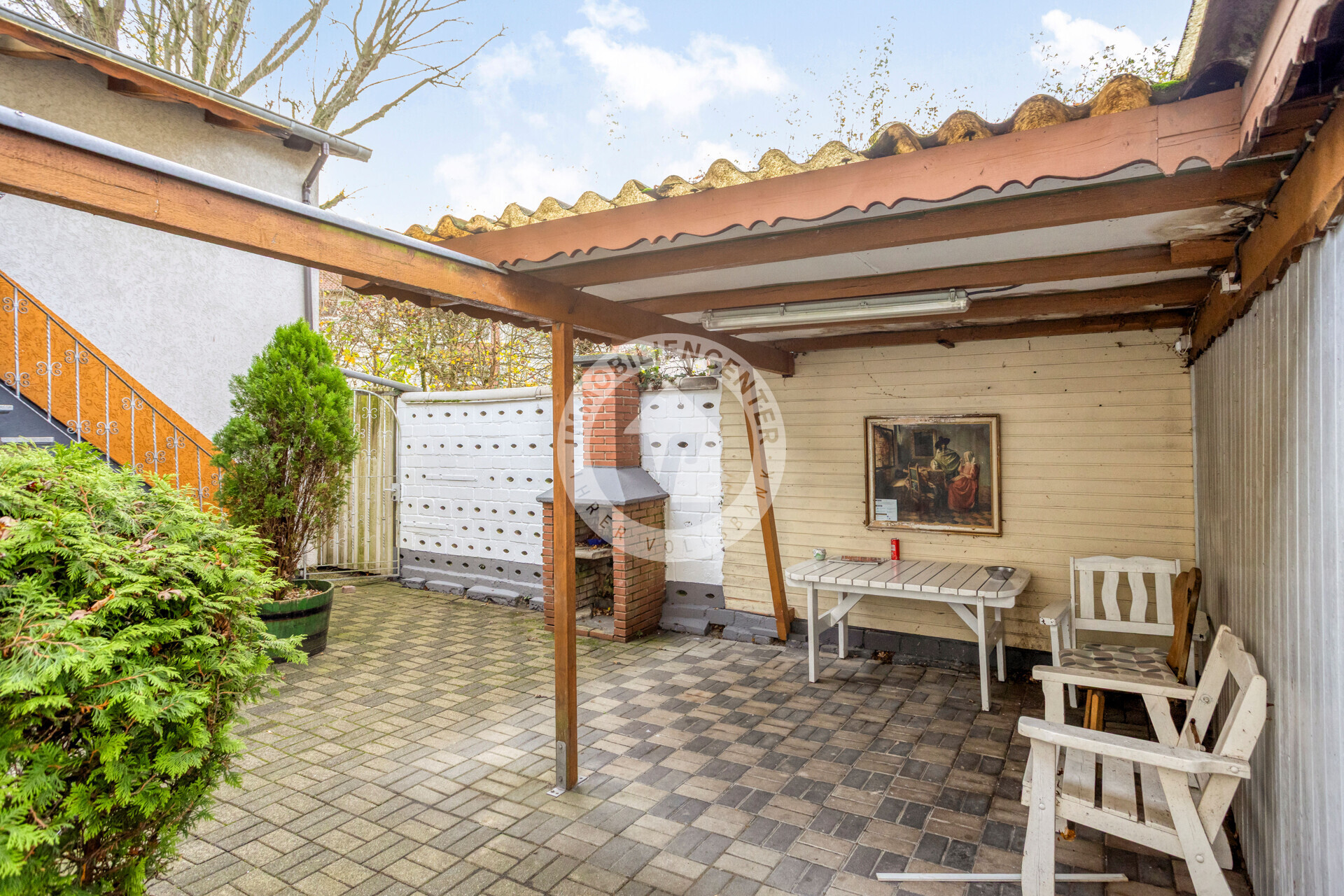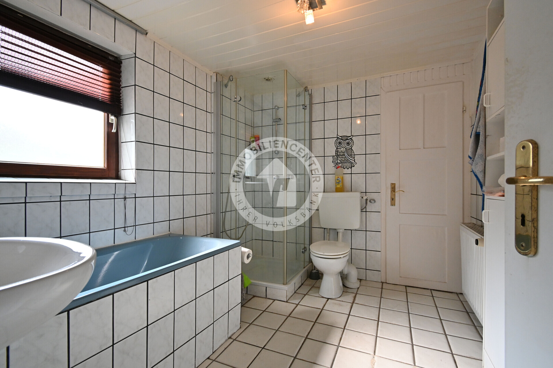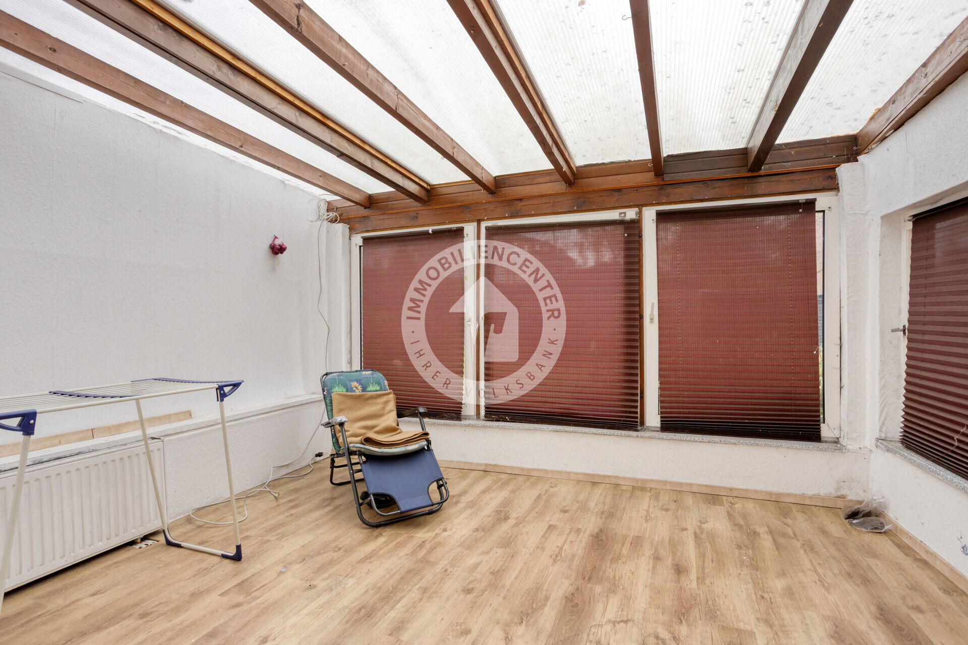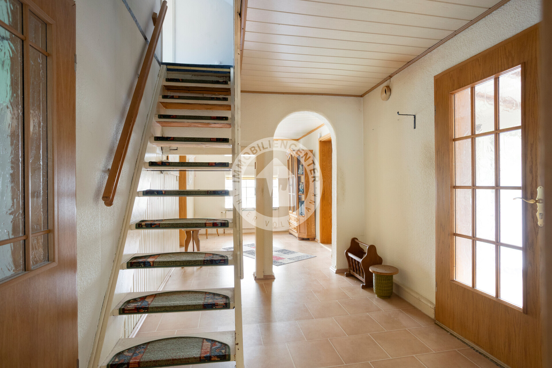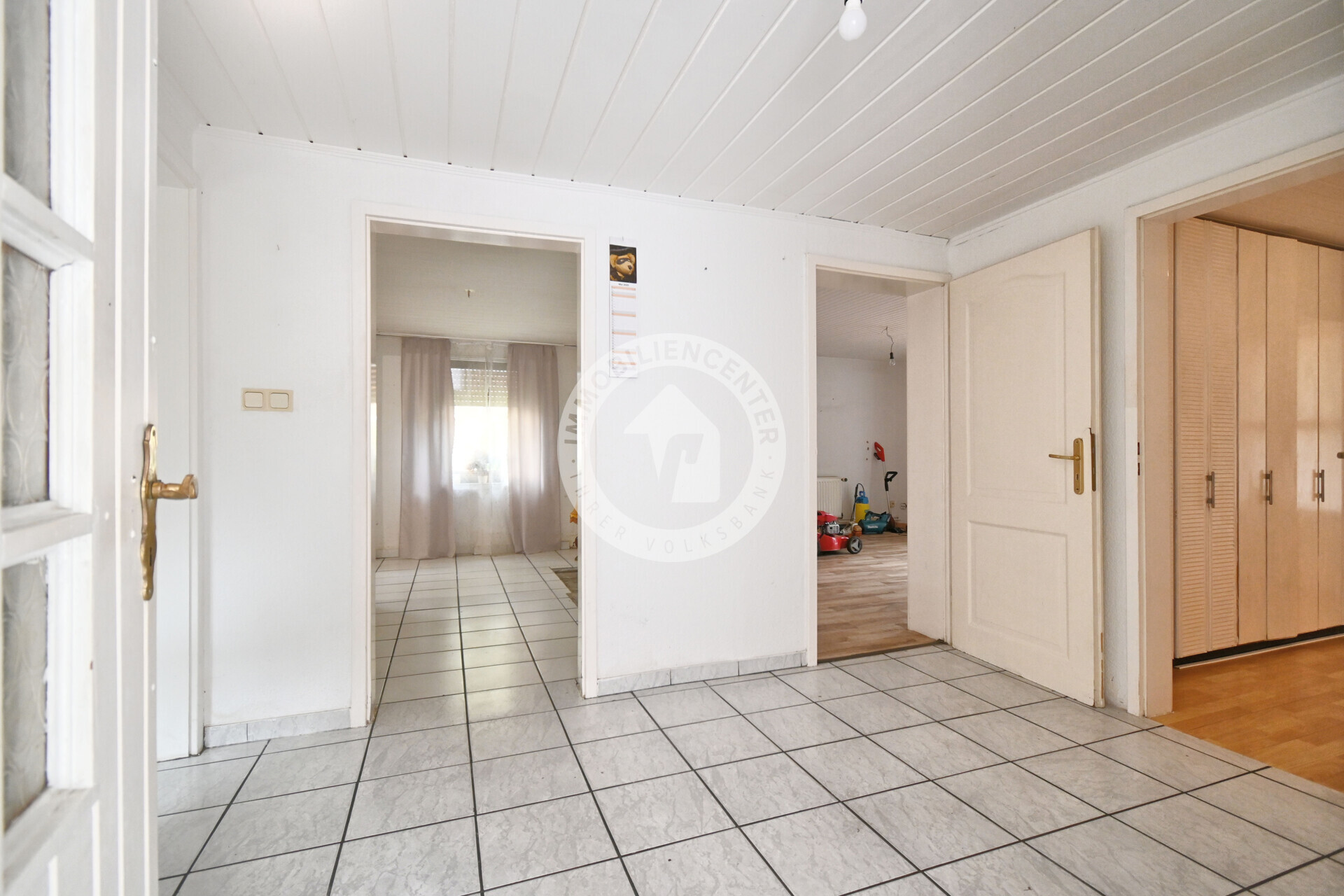 Durch den nachträglich angebauten Windfang entstanden zwei separate Eingänge, die vielfältige Nutzungsmöglichkeiten bieten. Ob Mehrgenerationenwohnen, Vermietung oder Umgestaltung zu einem Einfamilienhaus – Ihrer Kreativität sind keine Grenzen gesetzt.
