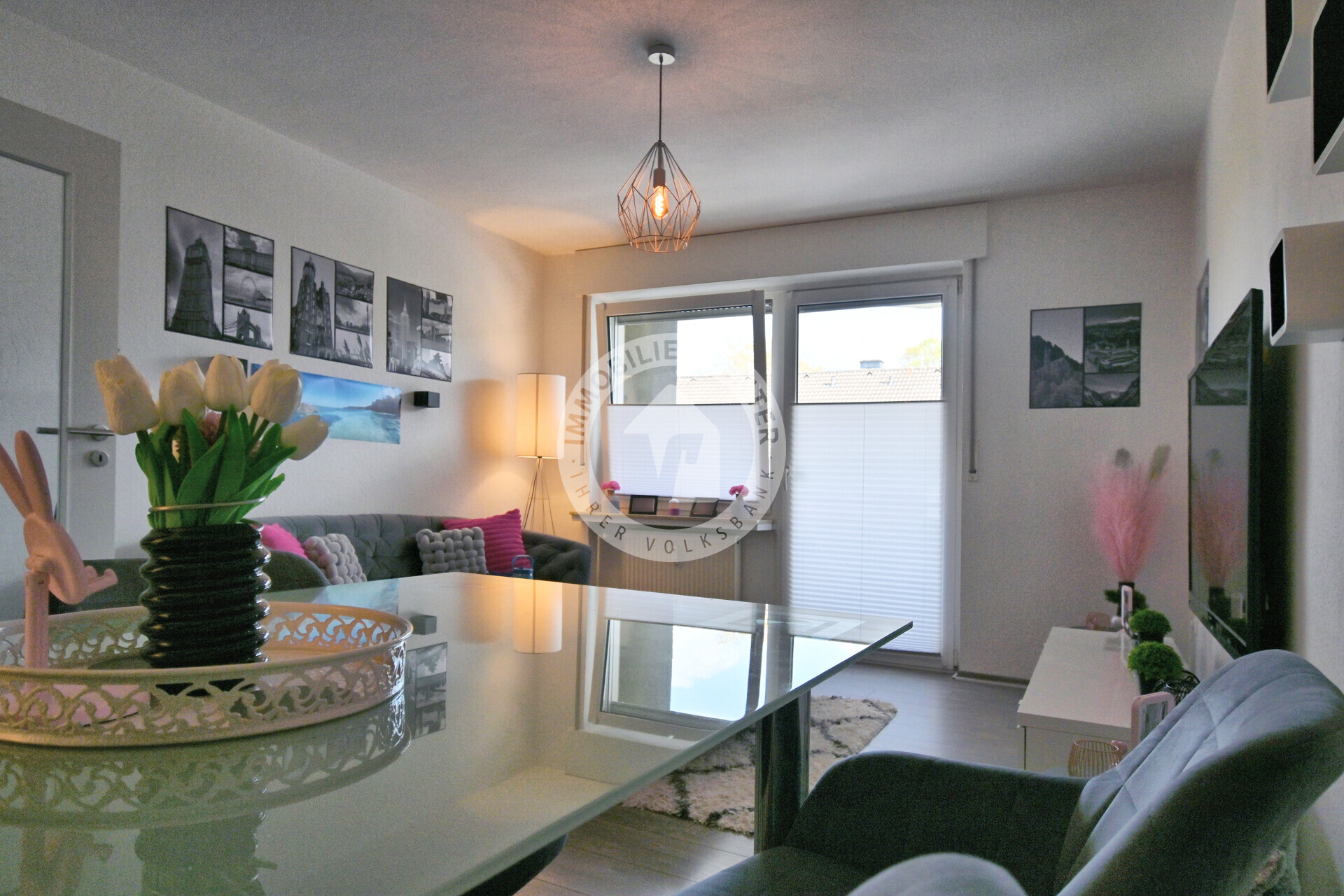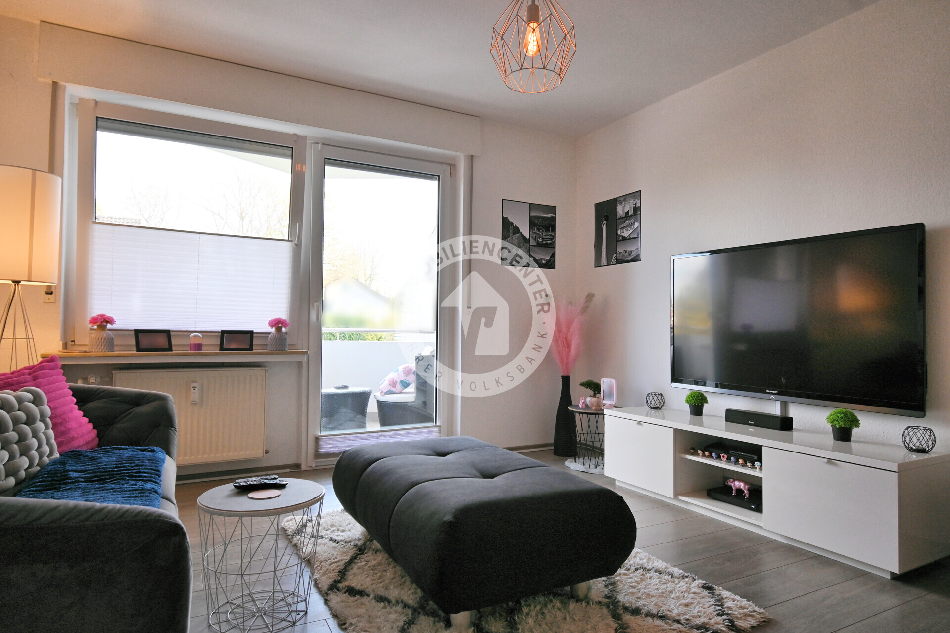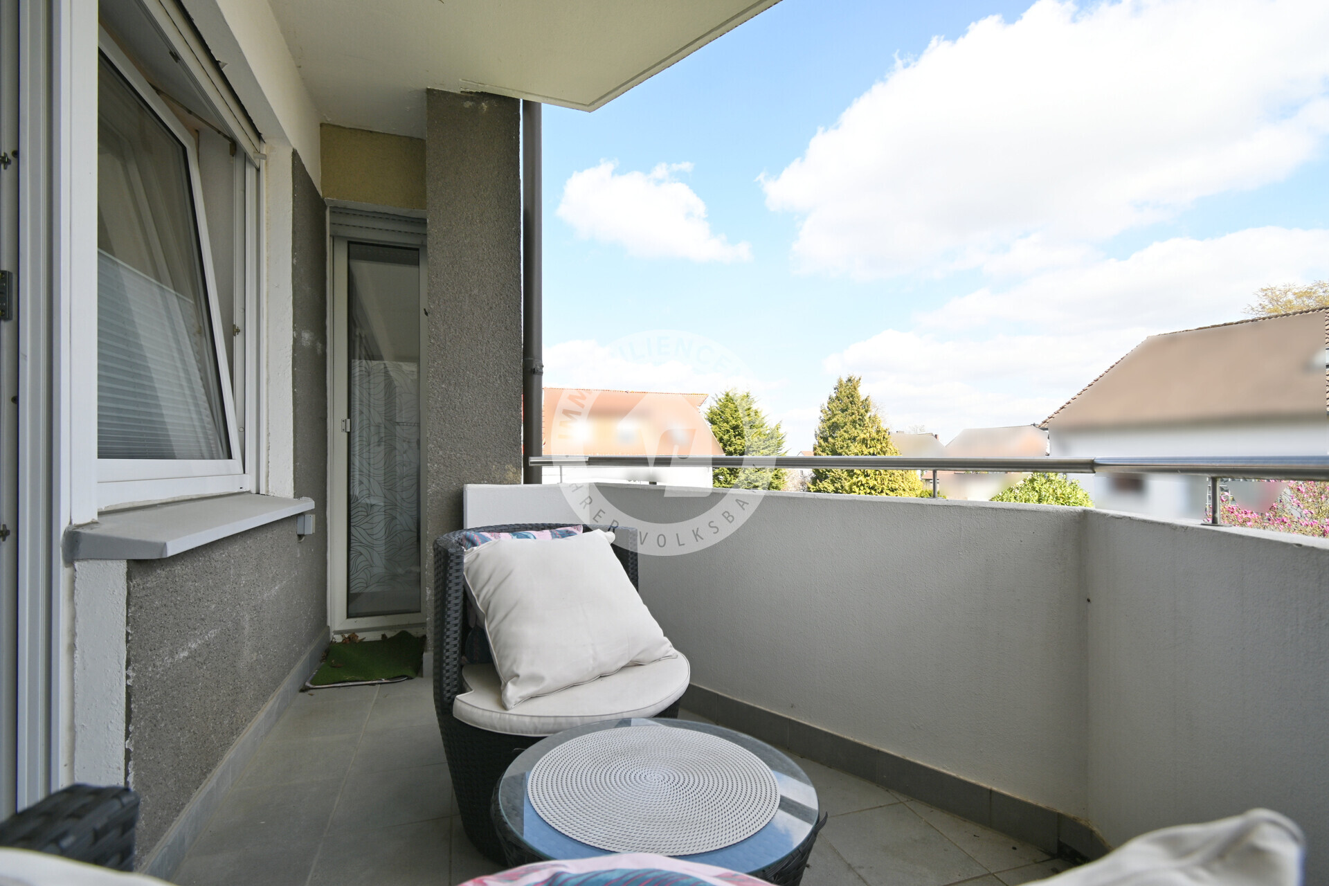Der großzügige Wohnbereich bietet direkten Zugang zum gemütlichen Balkon, der zusätzlich auch vom Schlafzimmer aus begehbar ist – ein besonderes Highlight, das für noch mehr Wohnkomfort sorgt.