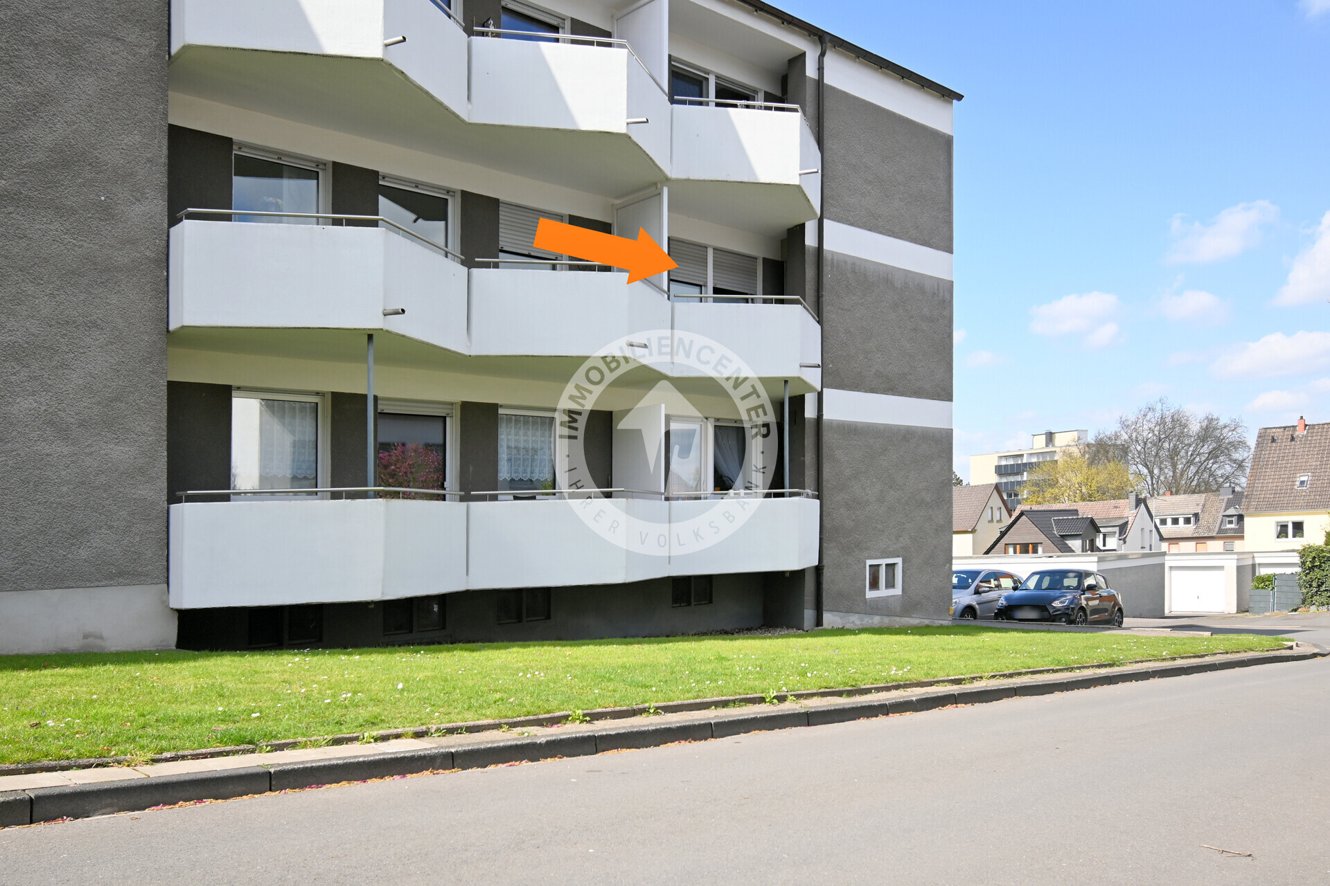 Vor dem Haus stehen gemeinschaftliche Stellplätze zur Verfügung, die den Alltag angenehm erleichtern.