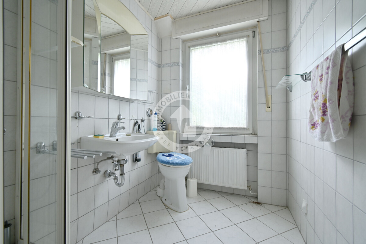 Abgesehen von einzelnen Investitionen im Laufe der Jahrzehnte befindet sich die solide und klassisch geschnittene Immobilie in einem weitestgehend modernisierungs- und sanierungsbedürftigen Zustand.