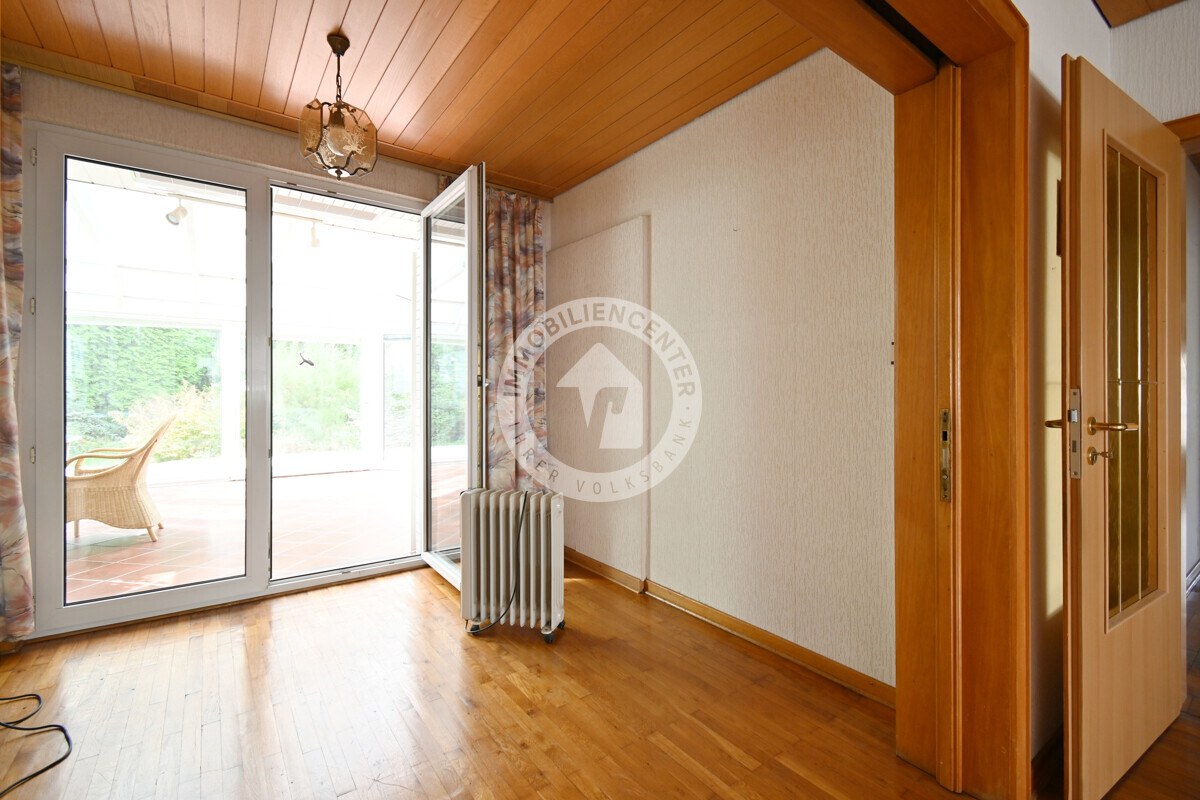 Das zwischen 1960 und 1962 erbaute, voll unterkellerte Domizil mit großer Garage verfügt über klar geschnittene, zeitgemäße Räumlichkeiten.