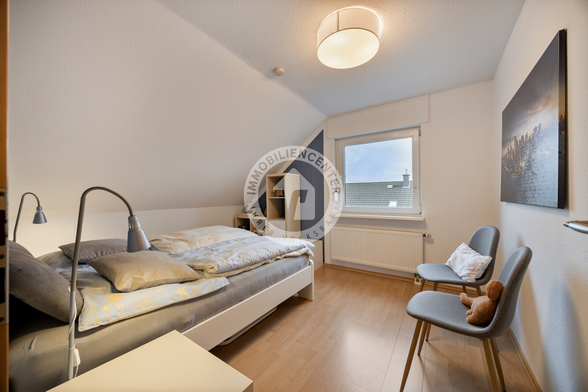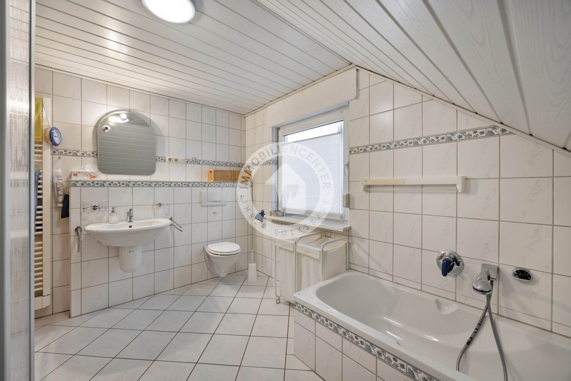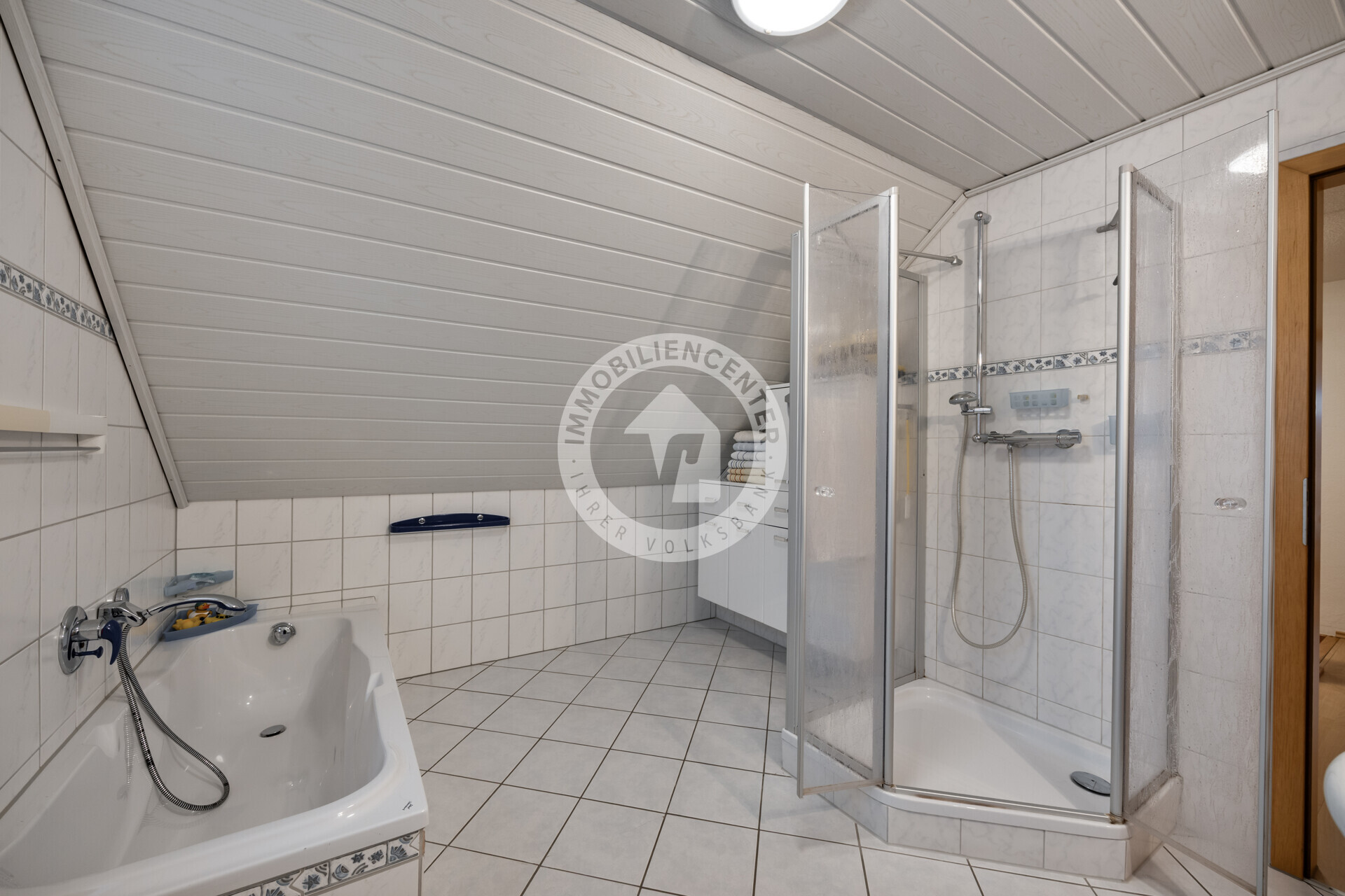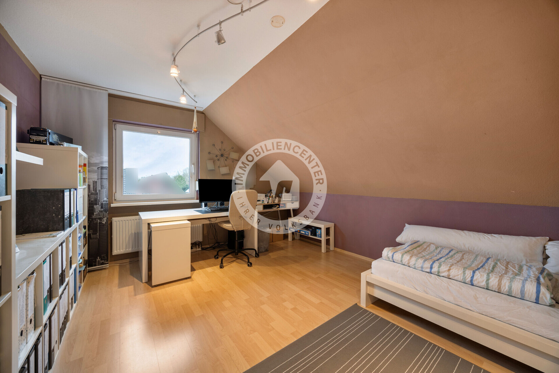 Im Dachgeschoss befinden sich drei gut geschnittene Schlafzimmer, die sich ideal als Kinder‑, Arbeits‑ oder Elternzimmer eignen. Das zeitlose Bad mit Fenster, Dusche und Badewanne bietet viel Komfort.