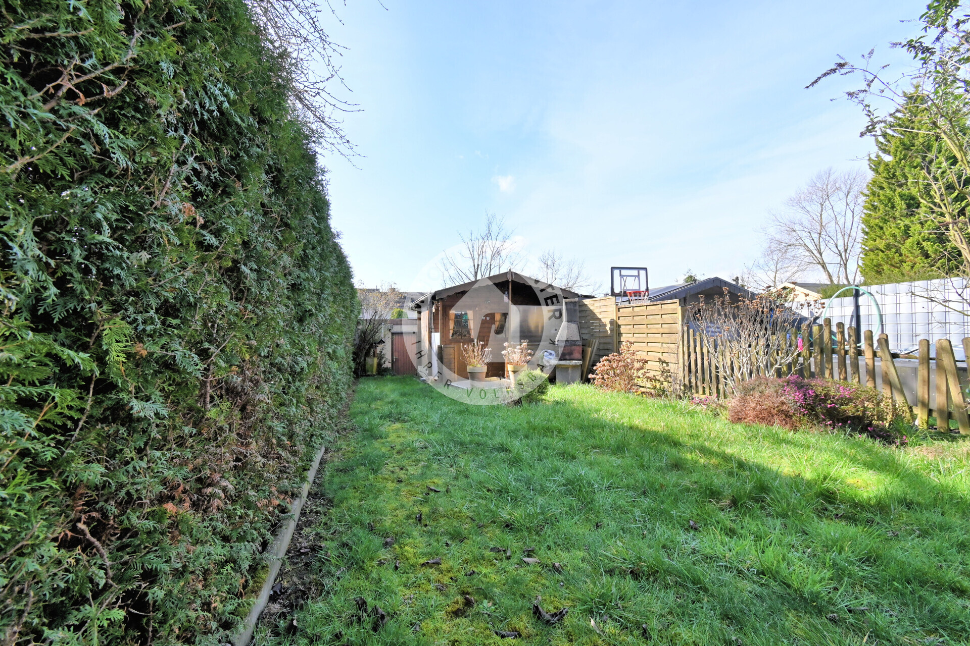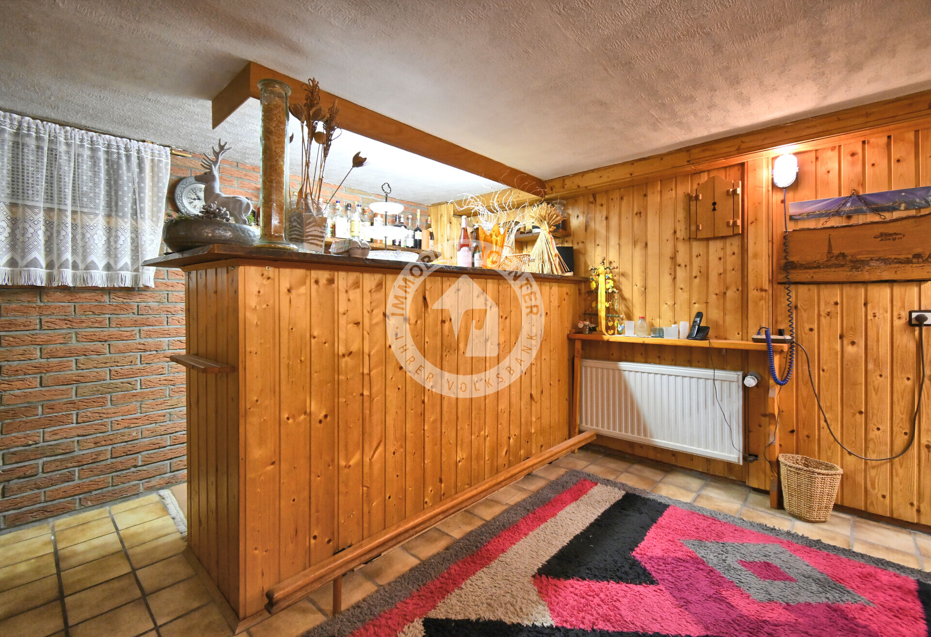 Das Kellergeschoss umfasst ein Kellerbad, augenscheinlich aus den 1980er Jahren, einen Heizungskeller sowie eine urige Kellerbar. Ein direkter Ausgang führt in den Garten – ideal für Hobbygärtner oder als Zugang nach einem Gartentag. Der Garten selbst überzeugt mit einem praktischen Gartenhaus und einem rückwärtigen Zugang zur Garage.