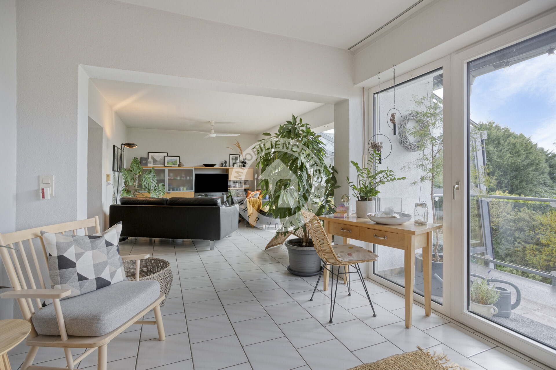 Dieses Haus teilt sich in eine Hauptwohnung (ca 160m²), eine Einliegerwohnung (ca 60m²) und das wohnlich ausgebaute Dachgeschoss (ca 80 m²). Durch den offen gestalteten Küchen- /Essbereich und den luftigen Zuschnitt des Hauses, haben Sie eine tolle Sichtachse durch den gesamten oberen Wohnbereich. Das Wohnzimmer mit dem beeindruckenden Wintergarten und Balkon lädt zu gemütlichen Stunden über das gesamte Jahr verteilt ein. Der uneinsehbare Garten garantiert Privatsphäre und Ruhe, ideal für Familien und Gartenliebhaber.