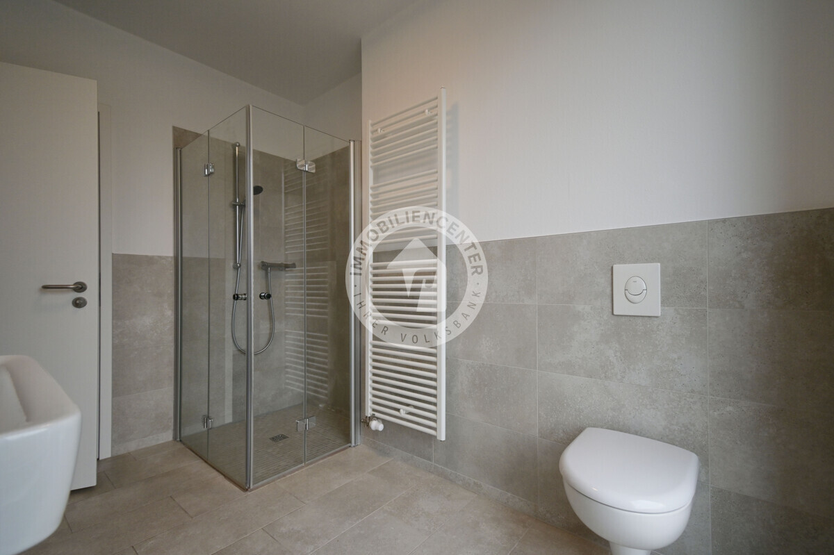 Die barrierearme Wohnung umfasst ein modernes Duschbadezimmer mit Tageslicht und profitiert von einer vorteilhaften Raumaufteilung, die sowohl Funktionalität als auch Komfort gewährleistet.