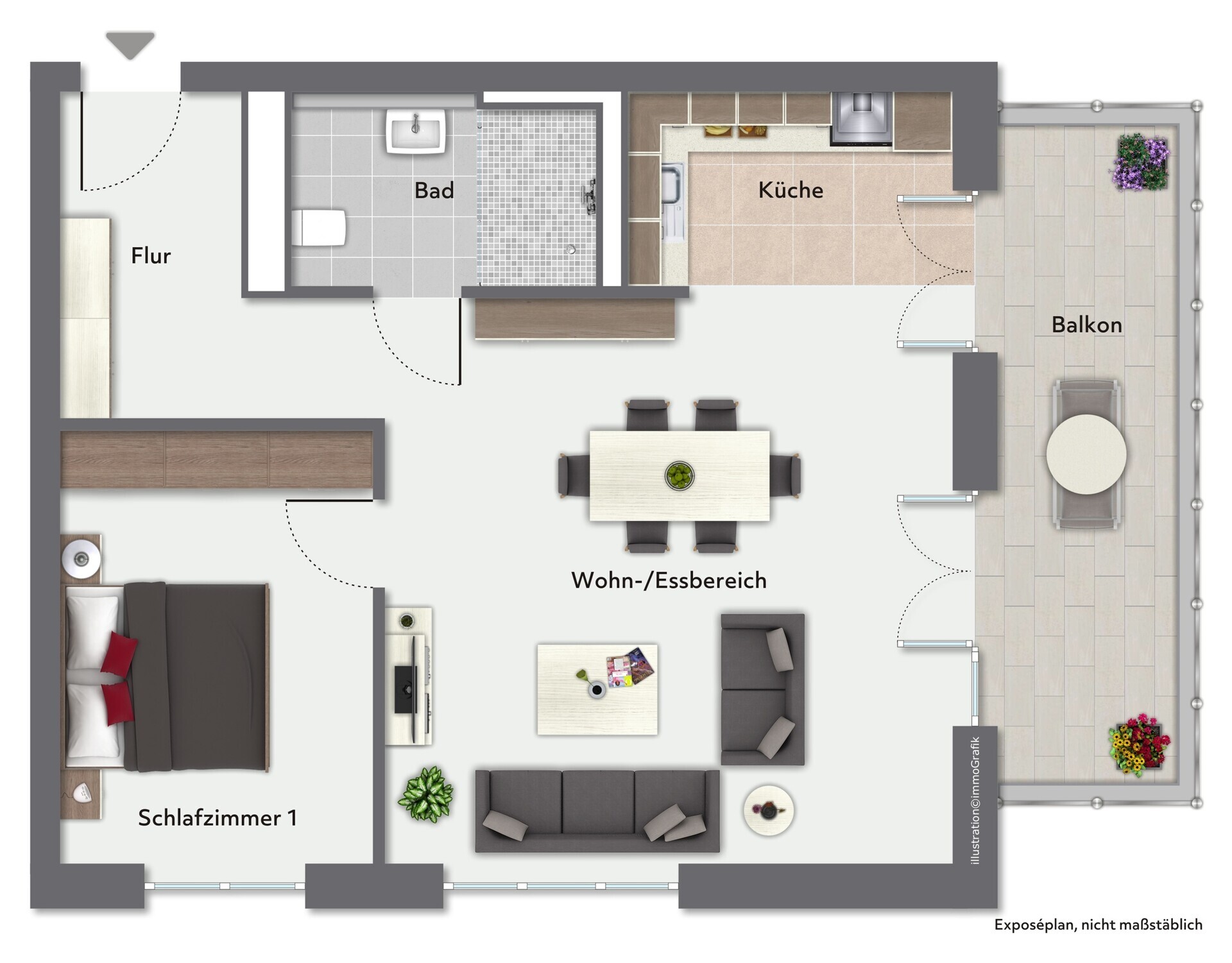 Neubauwohnungen im Stadtzentrum: Etagenwohnung mit 2 Zimmern und Balkon