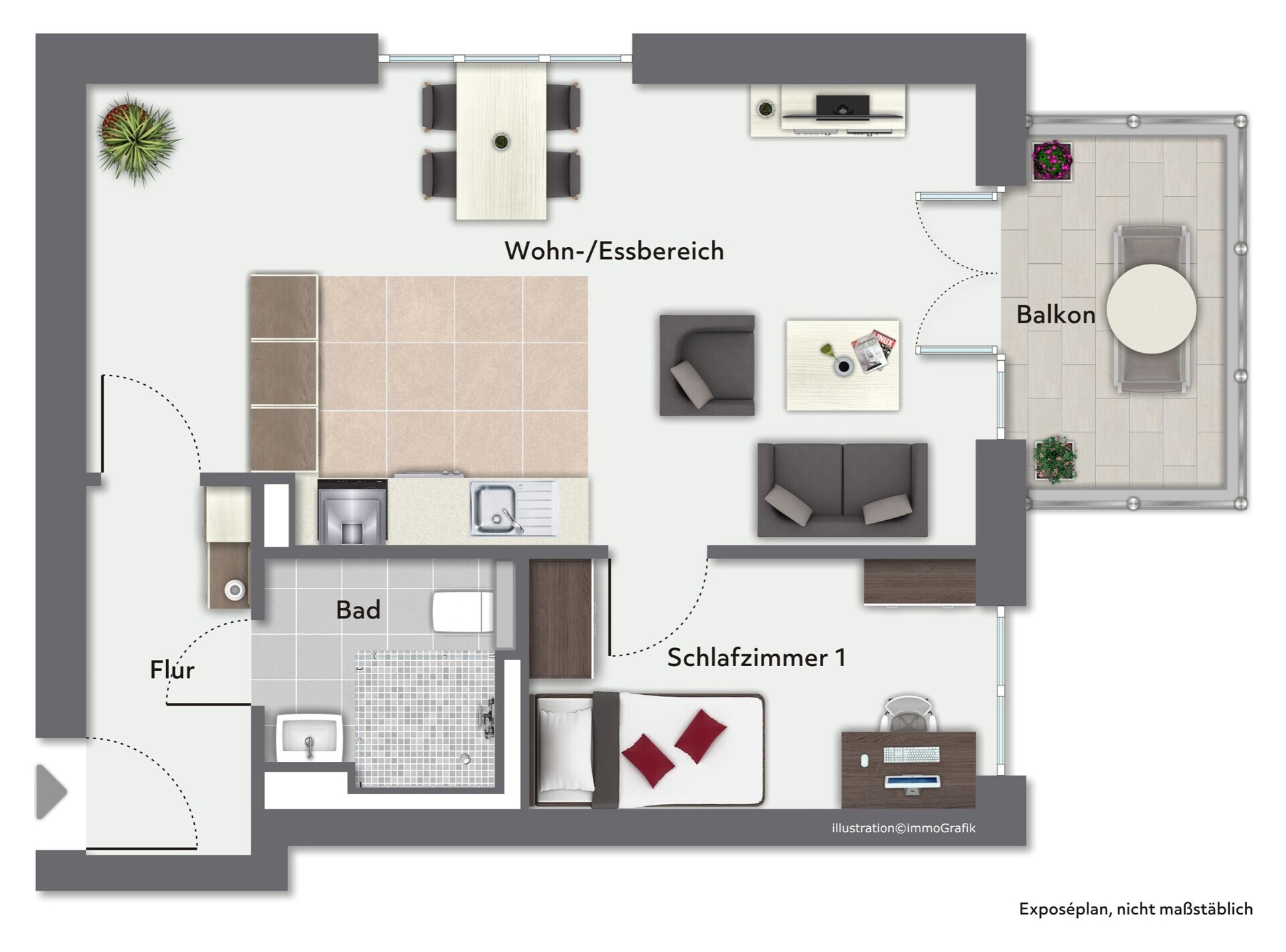 Neubauwohnungen im Stadtzentrum: Etagenwohnung mit 2 Zimmern und Balkon