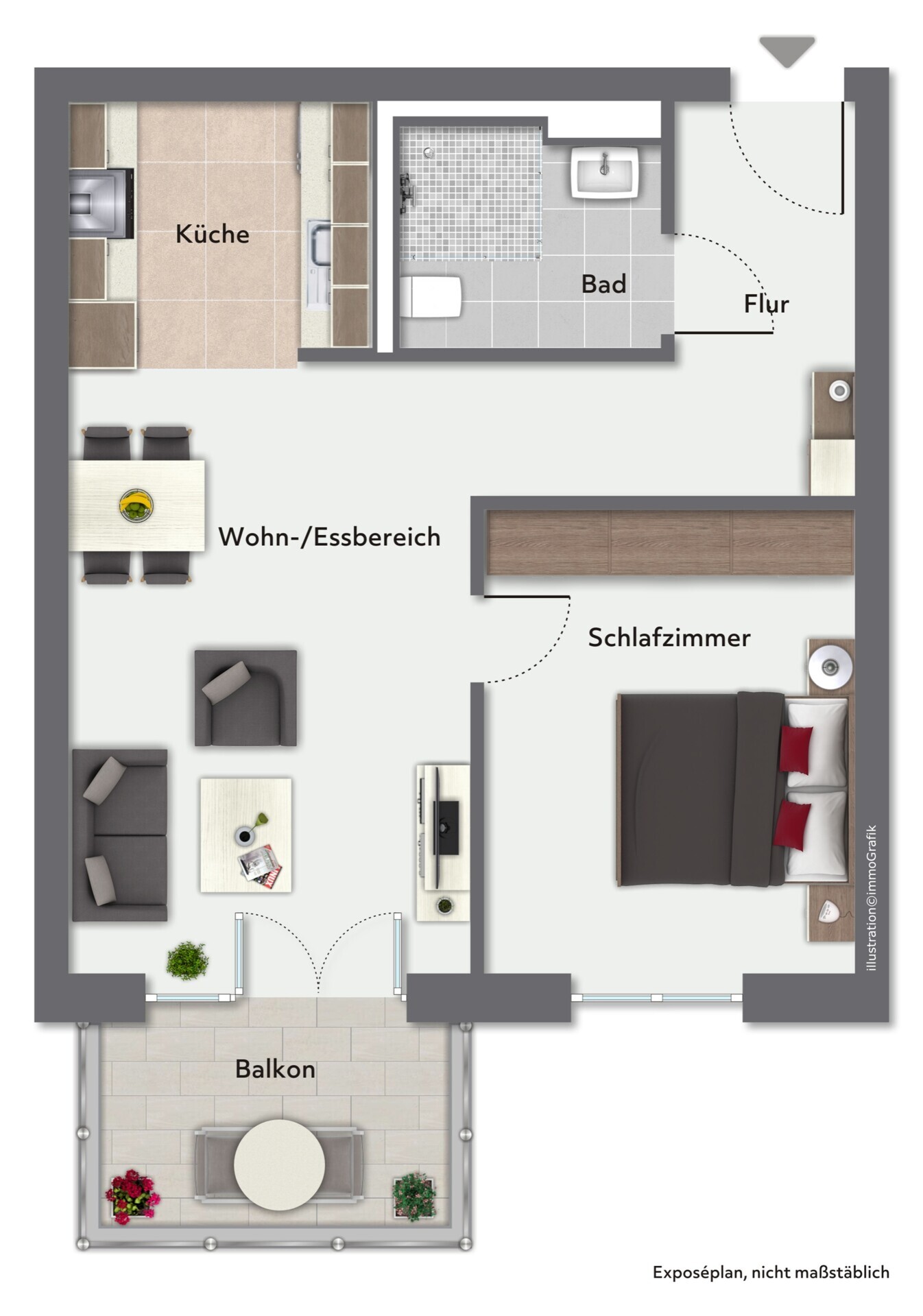Neubauwohnungen im Stadtzentrum: Etagenwohnung mit 2 Zimmern und Balkon