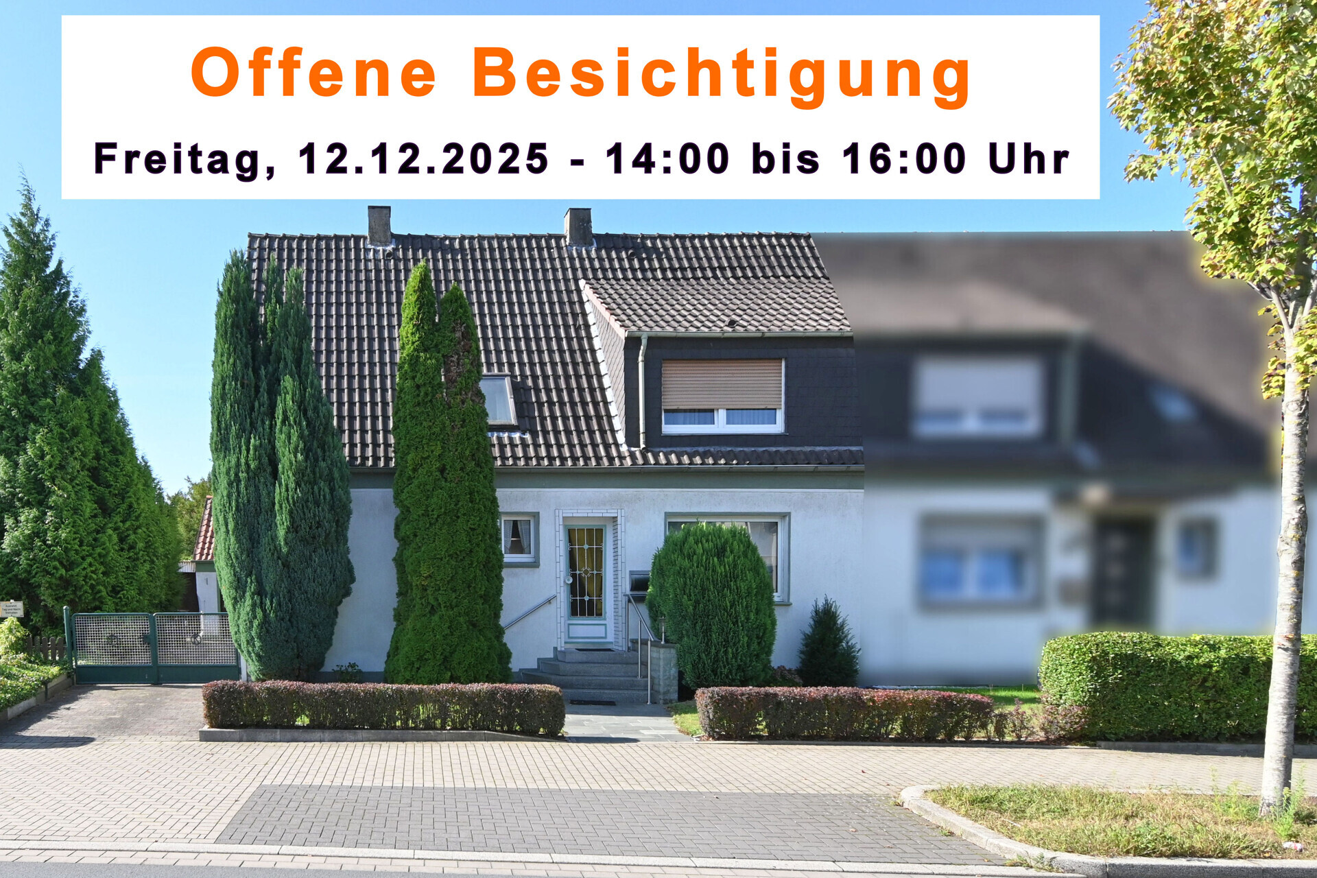 Am 12.12.2025 findet in der Zeit von 14:00 – 16:00 Uhr eine offene Besichtigung in dieser Doppelhaushälfte statt.