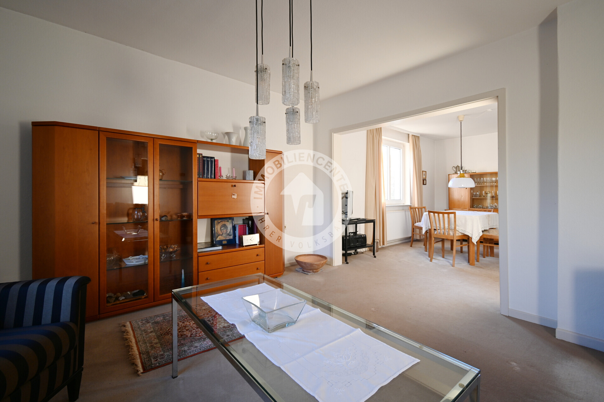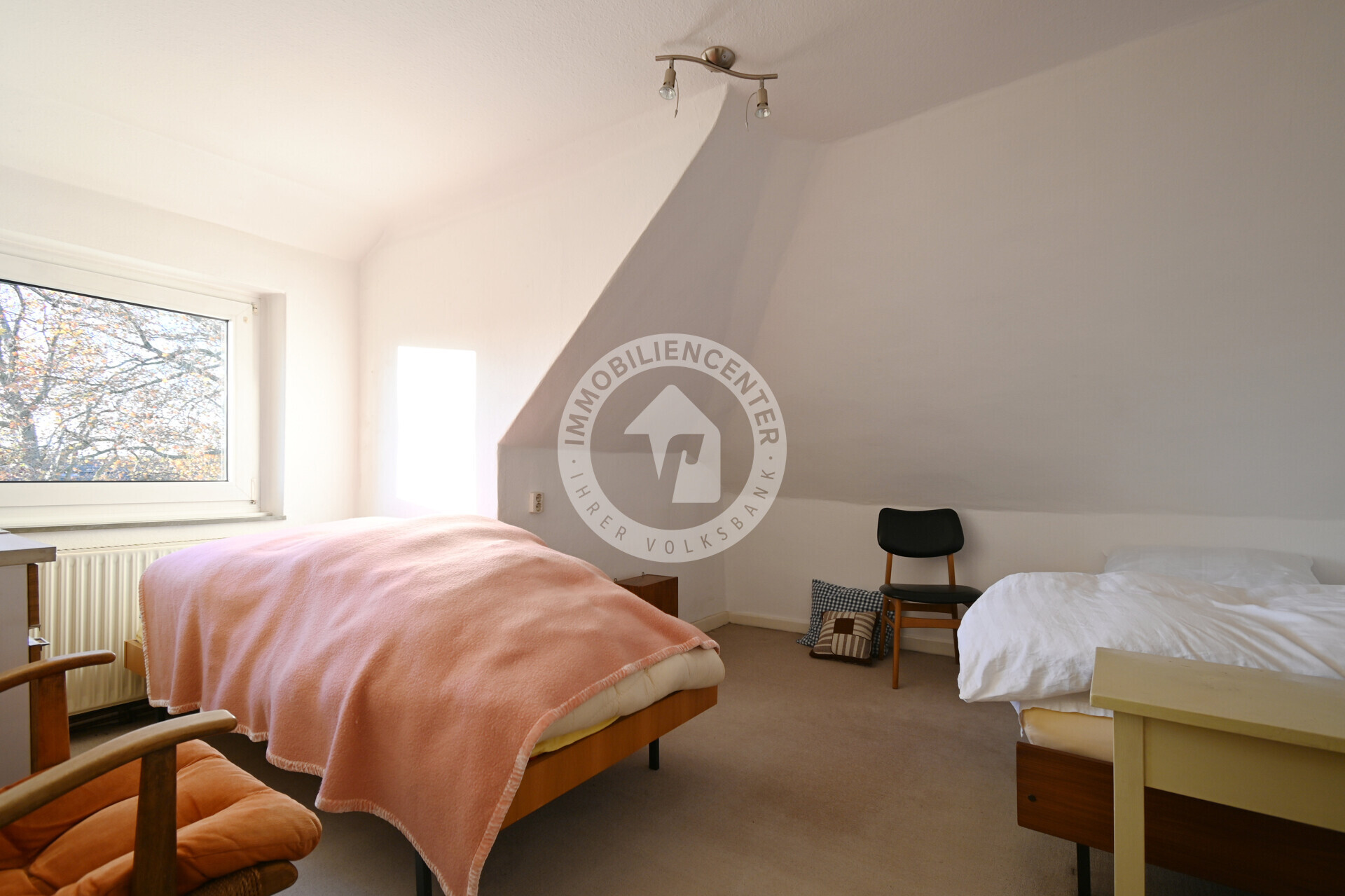 Die Raumaufteilung gliedert sich im Erdgeschoss in vier und im Obergeschoss in drei Zimmer. Auch das Dachgeschoss ist als separate Einheit mit zwei Zimmern und einem Bad ausgebaut. Eine dem Baujahr entsprechende Garage gehört ebenfalls zum Haus.