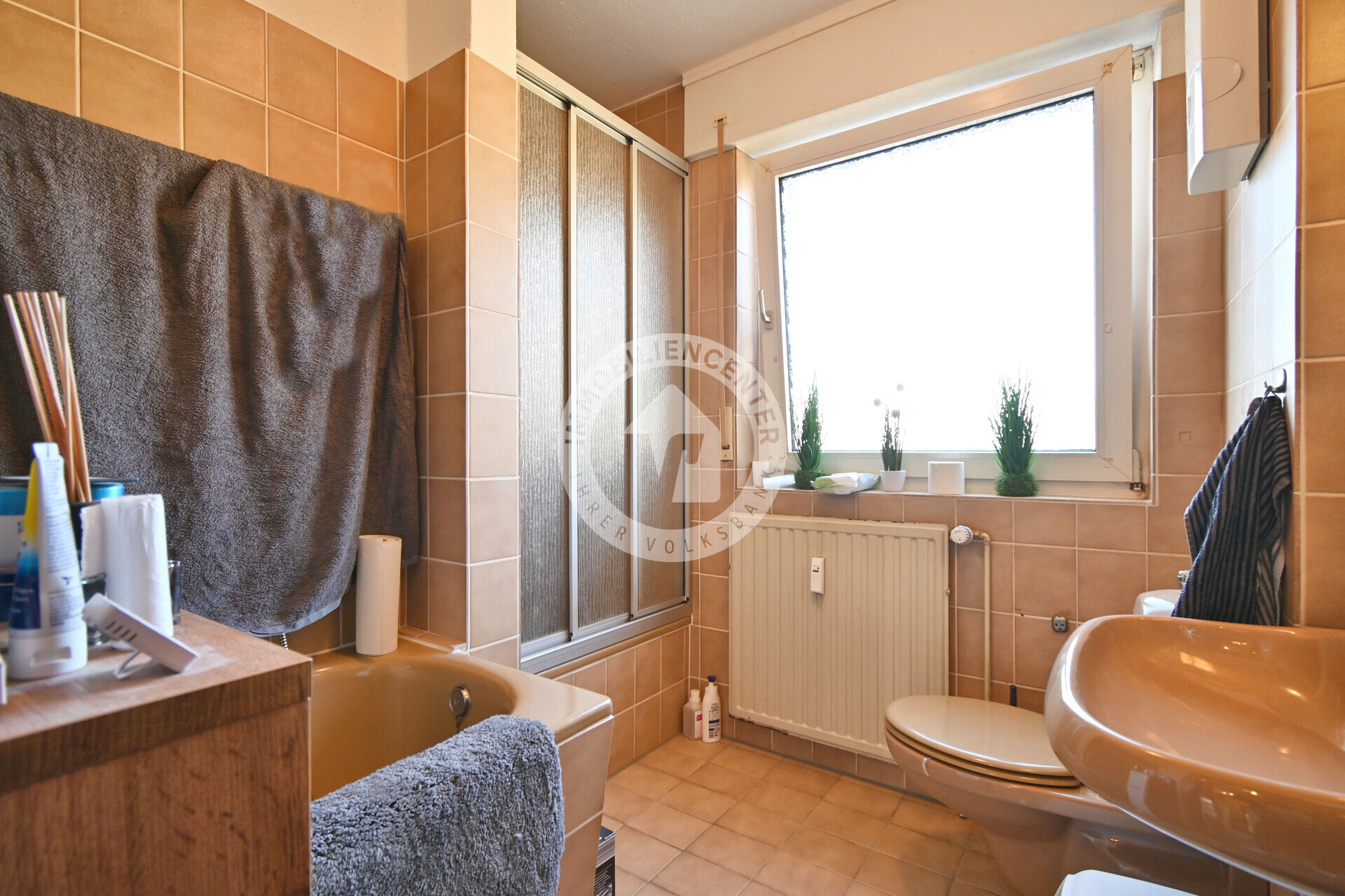 Das Tageslichtbad mit Badewanne und Dusche bietet alles, was man für den täglichen Wohlfühlmoment braucht.