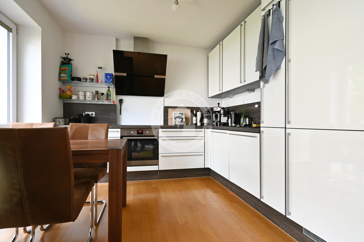 Beim Betreten gelangen Sie in die geräumige Wohnküche mit bodentiefen Fenstern, die eine helle, einladende Atmosphäre schaffen. Sie bietet ausreichend Platz zum Kochen, Essen und Wohnen und bildet das Herzstück der Wohnung. Von hier aus haben Sie Zugang zum großzügigen Balkon – ideal für entspannte Stunden im Freien.