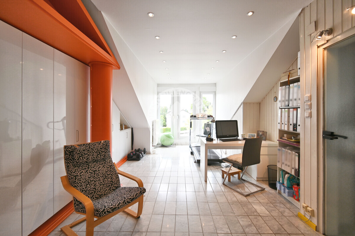 Das Dachgeschoss mit ausgebauter Dachgaube bietet genügend Raum für Kreativität, Hobbys oder auch ein weiteres Arbeitszimmer. Sie können es individuell gestalten.