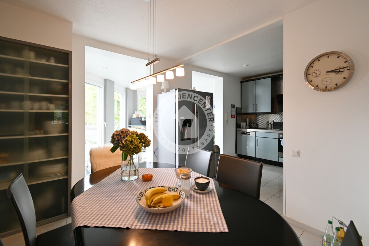 Im Erdgeschoss angekommen öffnet sich das Haus zu einem weitläufigen, offenen Wohnkonzept. Die hochwertige Einbauküche mit offenem Essbereich bildet einen fließenden Übergang zum einladenden Wohnzimmer, das durch die großen Fenster einen beruhigenden Blick ins Grüne gewährt. Der pflegeleichte Garten mit großzügiger Terrasse lädt zu schönen, ruhigen Sommerabenden in geselliger Runde ein.