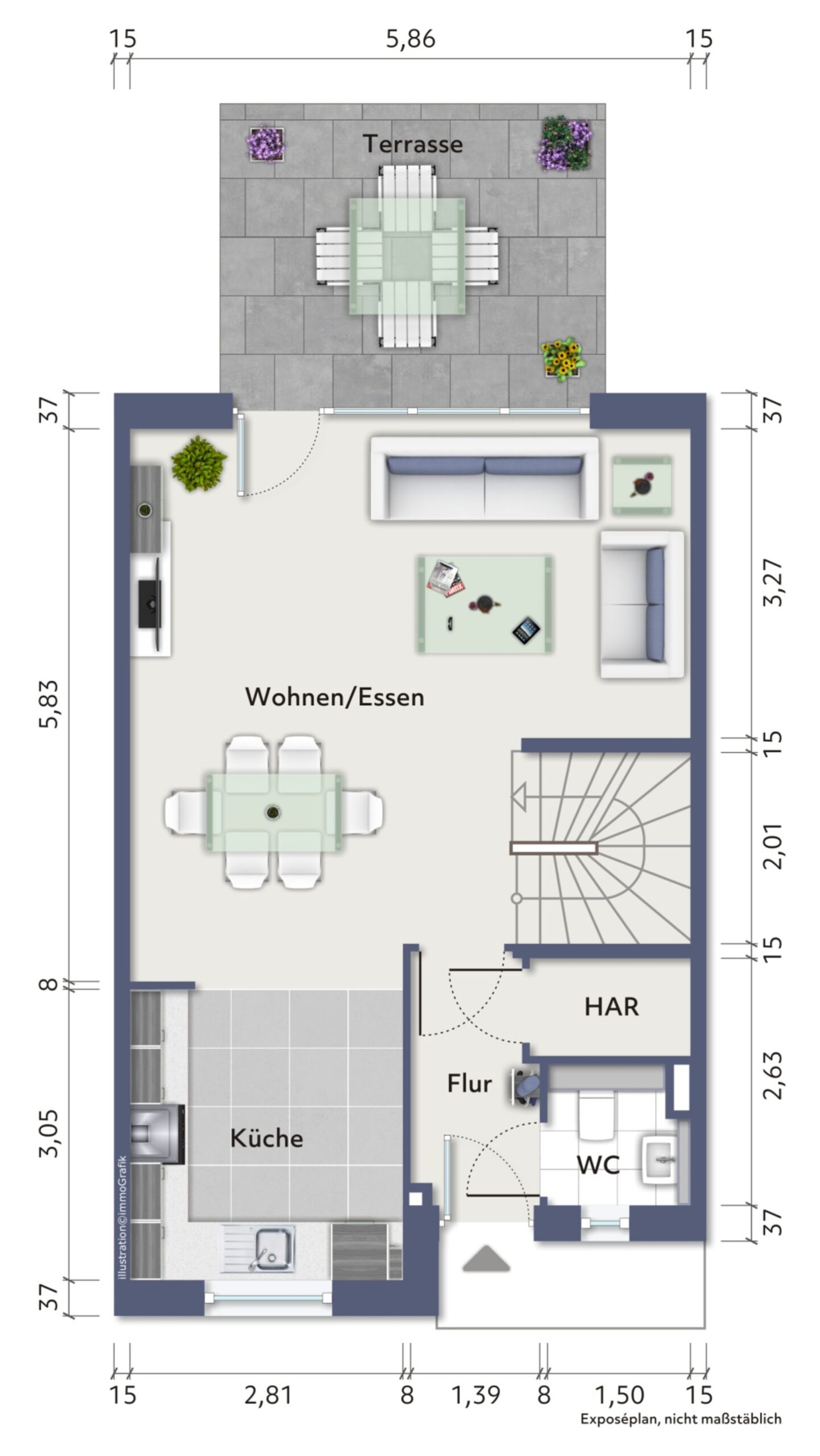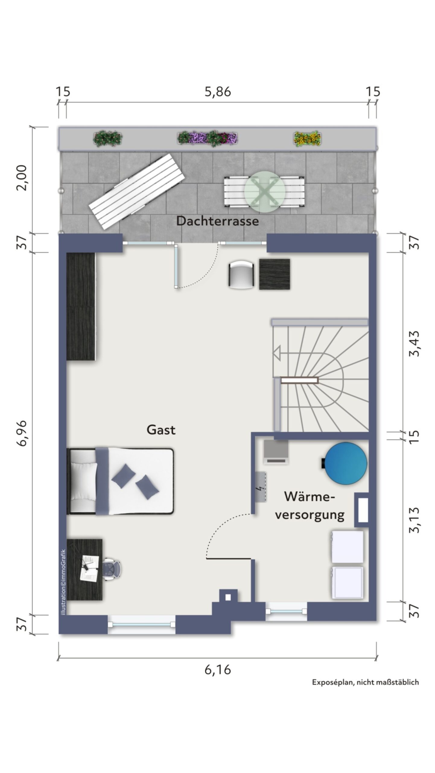 Dachterrasse, Terrasse und eigener Garten